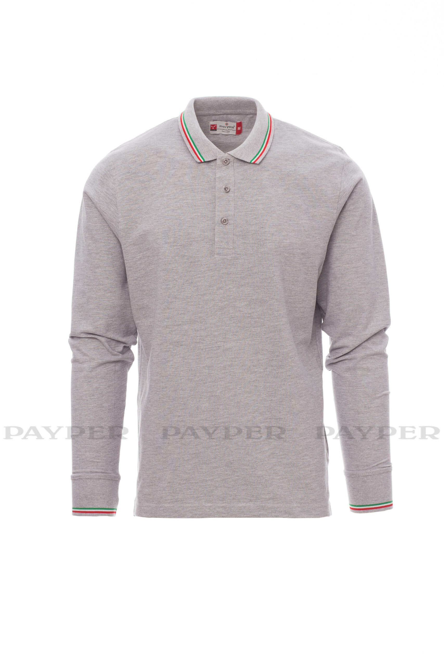 Polo unisexe à manches longues et 3 boutons assortis, col et poignets en bord côtes avec fin profil tricolore en contraste, fentes latérales, coutures du col couvertes, ruban de renfort latéral, renfort profilé sur encolure arrière