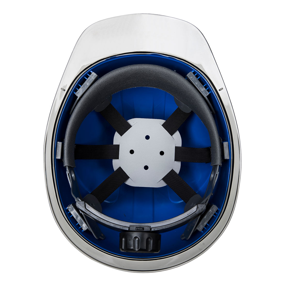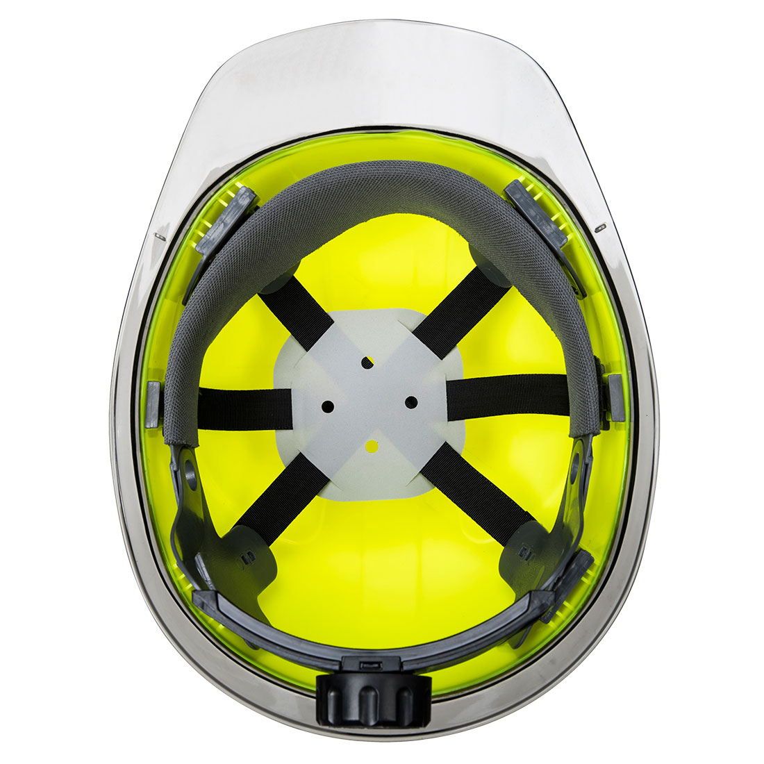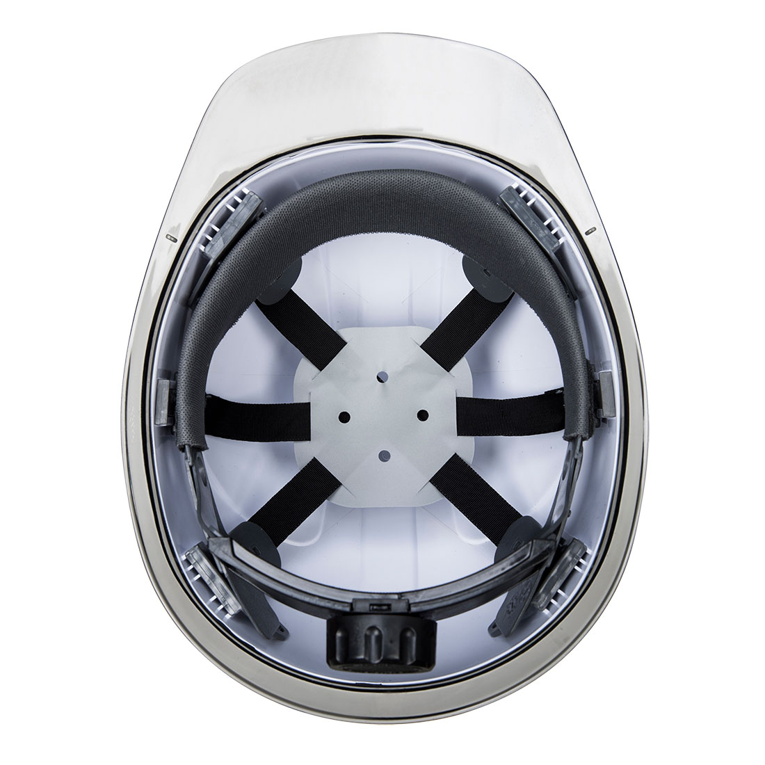 Le casque Skyview est uniquement fabriqué à partir de deux types de matériaux: coque en ABS et en polycarbonate. Ce mélange innovant offre tous les avantages d’un casque en ABS de qualité supérieure avec la caractéristique d’être translucide, offrant une visibilité améliorée et une protection contre les rayons UV. Moderne et différent, ce style est spécialement conçu pour les travailleurs en plein air. Il comprend un harnais textile confortable à 6 points, un réglage de la crémaillère et une mentonnière à 4 points pour un ajustement confortable.