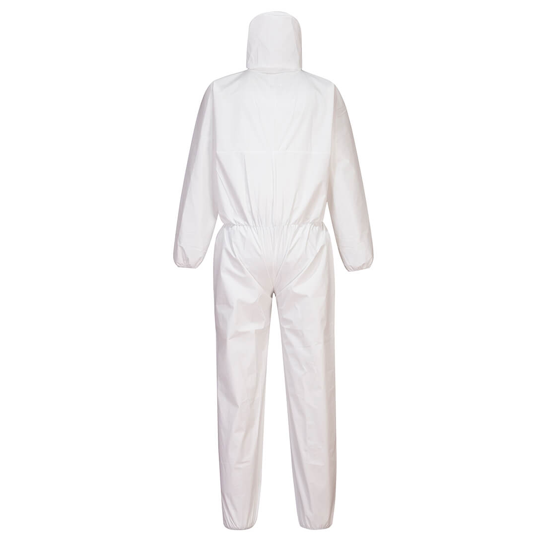 La conception spacieuse garantit un bon ajustement et ne limitera pas les performances au travail. Fabriqué à partir d’un tricot chaîne en tricot de polyester confortable et durable et laminé avec un film de polyéthylène à faible perméabilité. Les caractéristiques pratiques incluent une capuche, des chevilles, des poignets et une taille élastiqués, ainsi qu’une fermeture éclair avant à double sens et un rabat avant scellable.